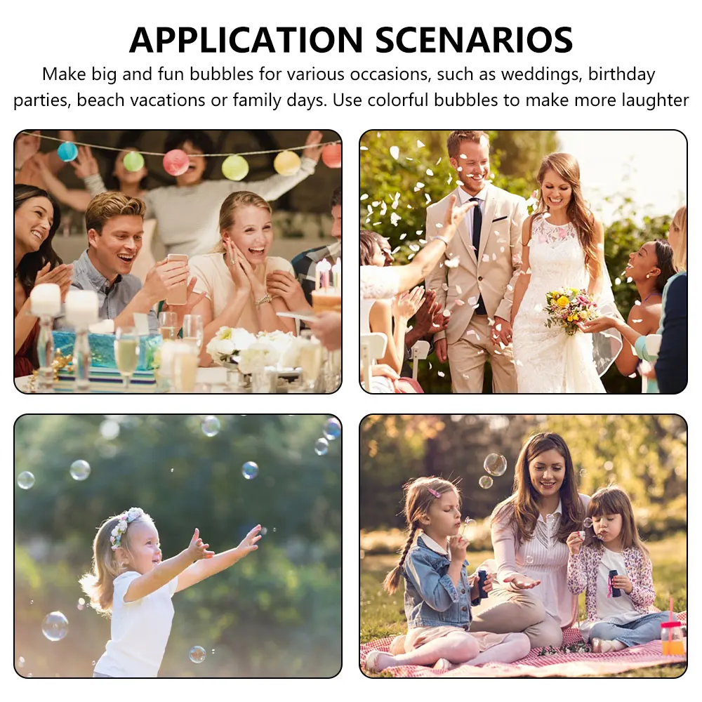 1.Set: Make big and interesting bubbles for various occasions, such as weddings, birthday parties, beach vacations or family days. Use colorful bubbles to create more laughter.