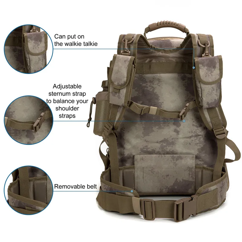 【Disperse the Pressure, More comfortable, Perfect Hiking Backpack】The adjustable chest belt can disperse the pressure of this military backpack, carrying more comfortable. The adjustable belt, let the whole fishing backpack fit our body, additional straps around the chest and waist to distribute the weight better. Moreover, the side buckles make this hunting backpack easy to secure it and reduce the size if it’s full.